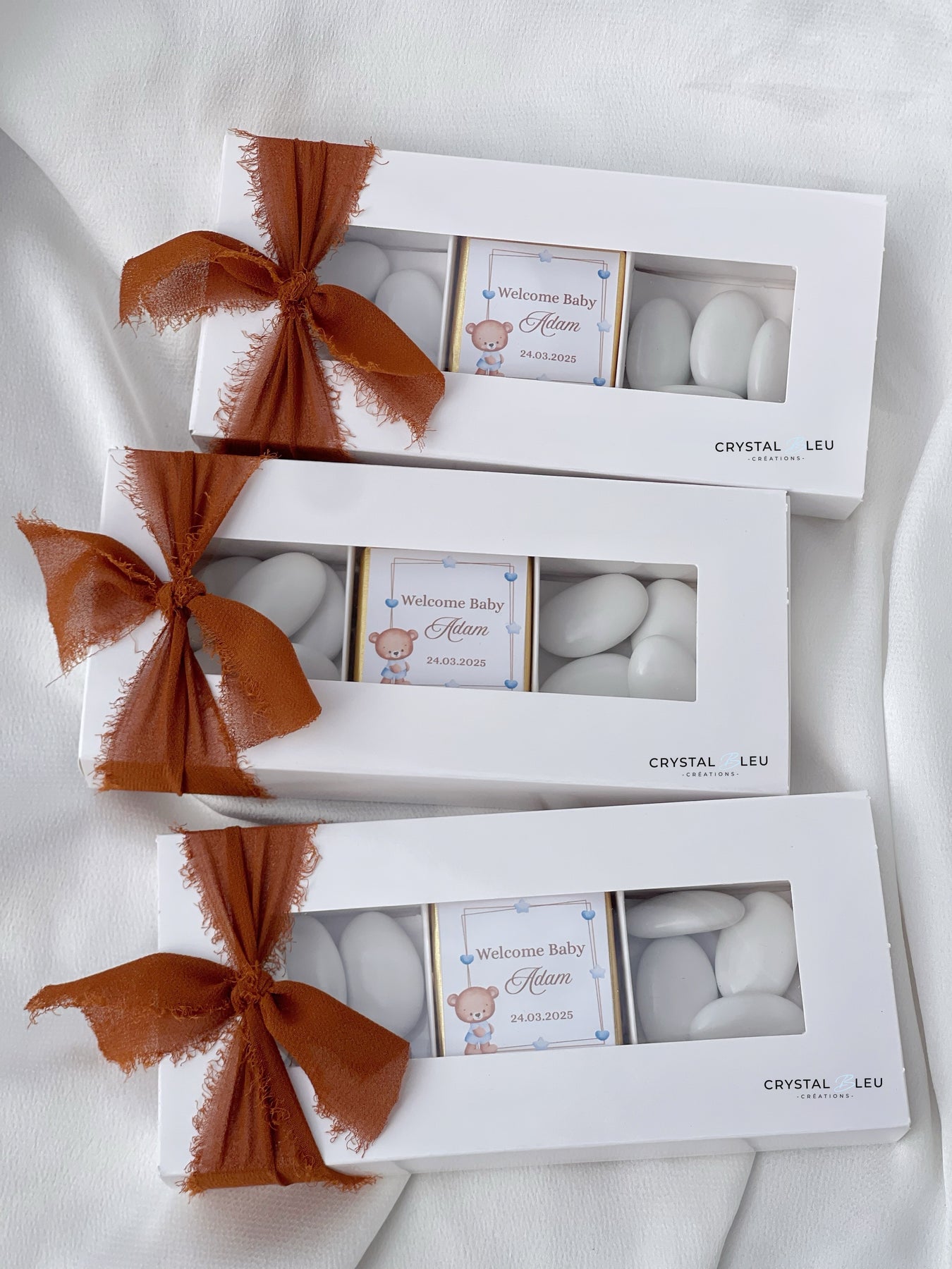Coffret avec dragées  et chocolat qui plaira à vos invités les plus gourmands