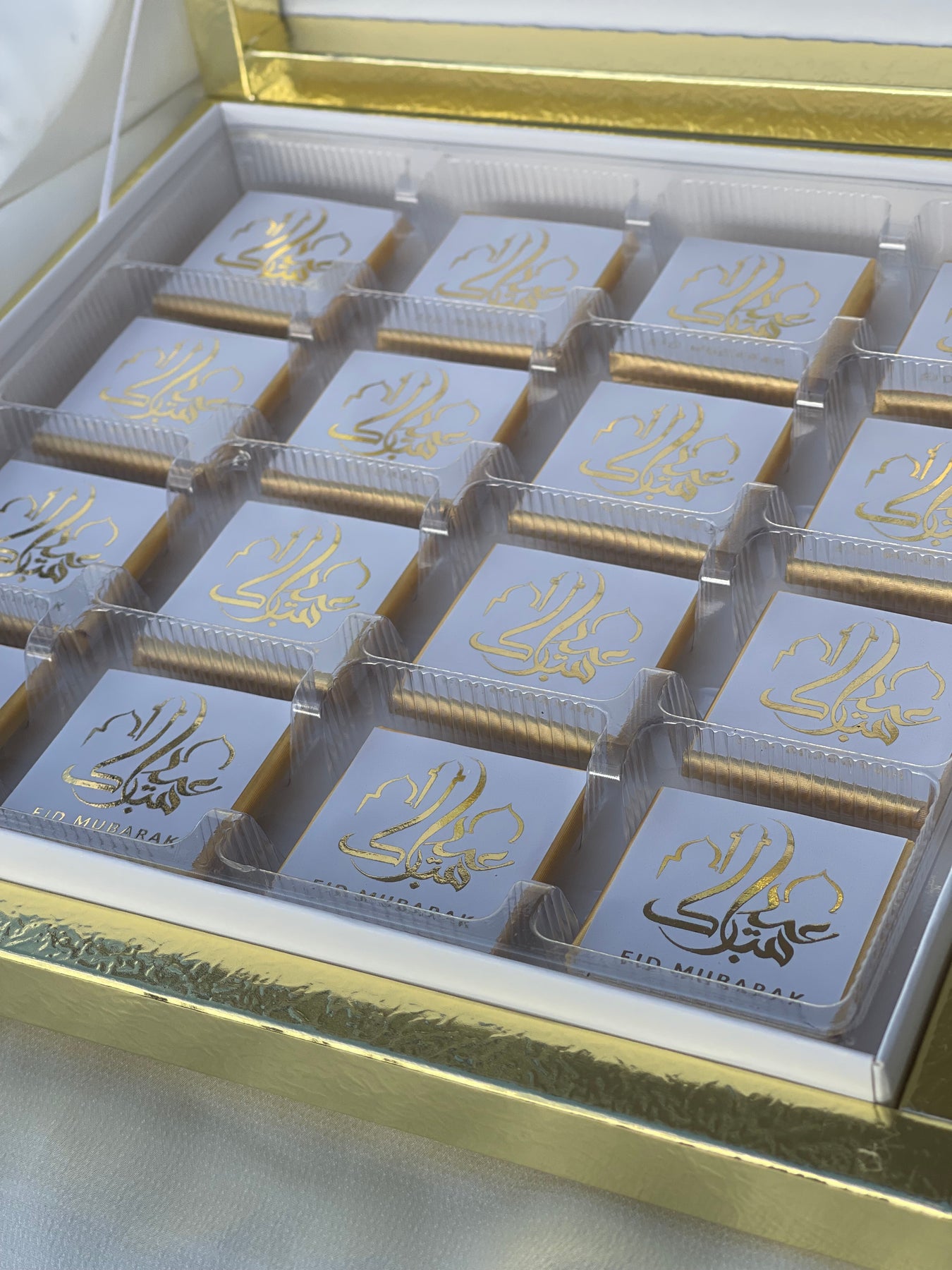 Magnifique coffret de 16 chocolats 🍫 avec dorure pour embellir vos tables le jour de l’Eïd