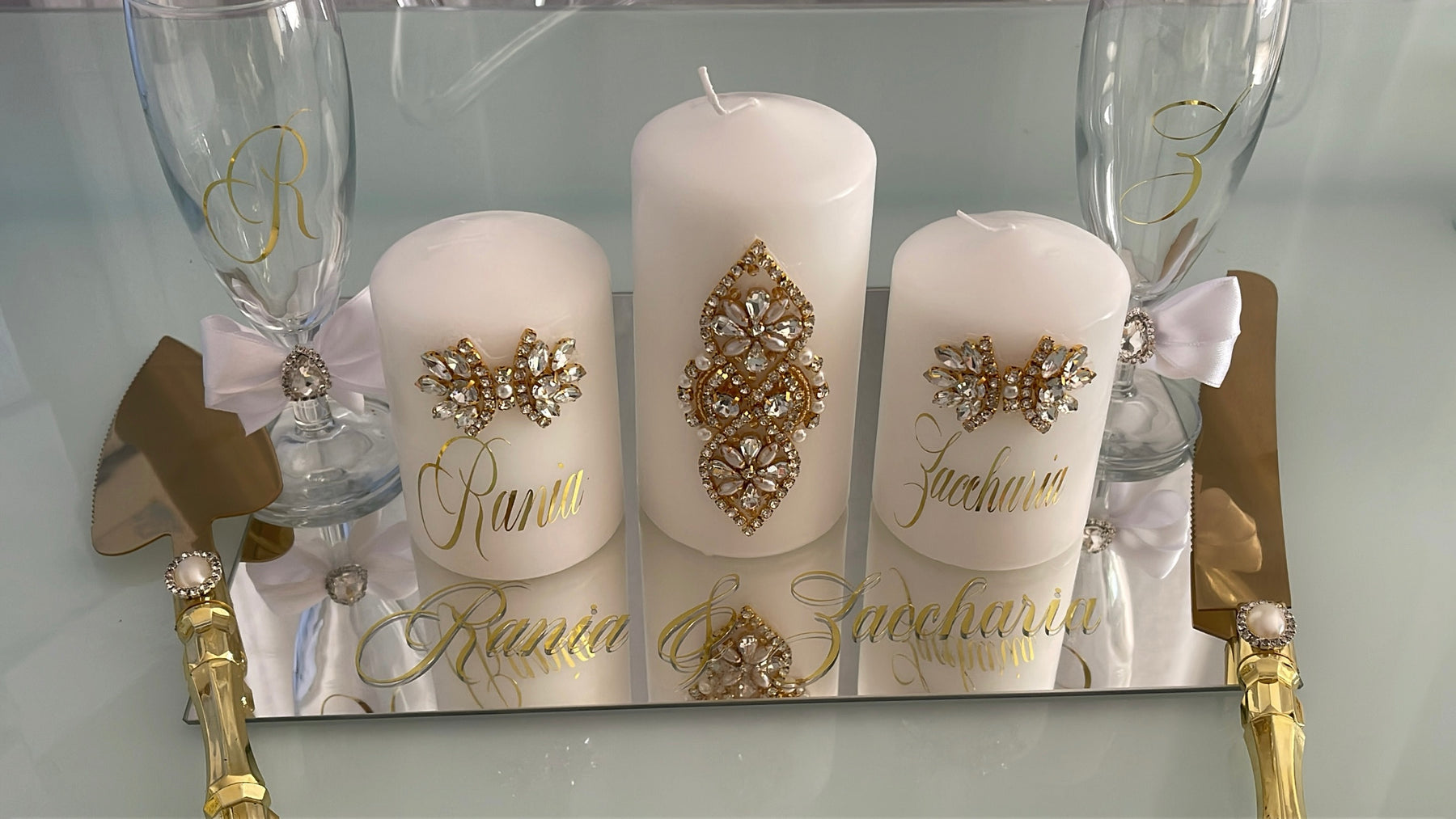 Nous pouvons ajouter également un bol pour le henna et modifier la couleur des noeuds et écritures sur les bougies