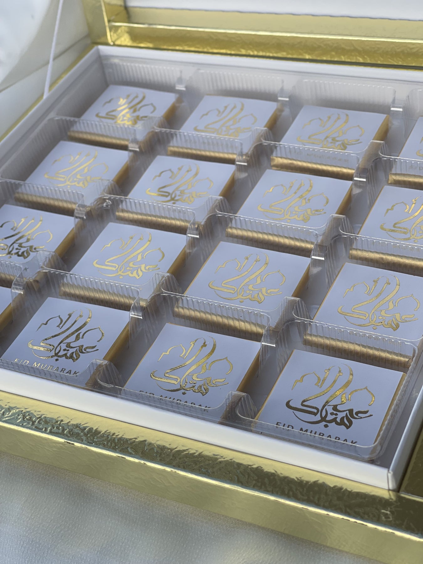 Magnifique coffret de 24 chocolats 🍫 avec dorure pour embellir vos tables le jour de l’Eïd
